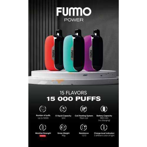The Fummo Power 15000 Puffs disposable vape offers extended usage, making it ideal for users who prefer fewer replacements and more value. One device can last for days or even weeks depending on usage habits.