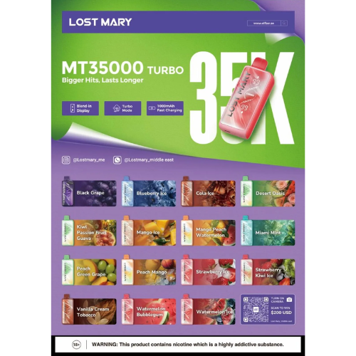 The Lost Mary MT 35000 Puffs Turbo Disposable Vape in Dubai UAE offers a wide variety of bold and refreshing flavors. Each puff delivers a clean, intense taste with consistent vapor quality. The turbo mode enhances airflow, allowing users to enjoy stronger clouds without compromising flavor balance.